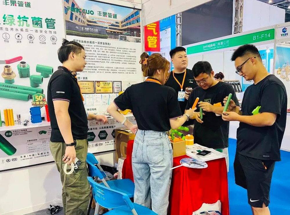 6月28日,義烏廚房、衛浴設施展覽會盛大召開,展會云集多個品牌企業和優質產品、網羅全球優質買家,整合各方優勢為眾多企業帶了優質的消費市場和交易資源。此次盛會上,豐果管道以其卓越的品質、創新的設計和多樣化的產品在展會上大放異彩,成為了備受矚目的焦點,吸引了眾多國內外客商的目光。展臺上精心陳列的各種管道產品走進豐果